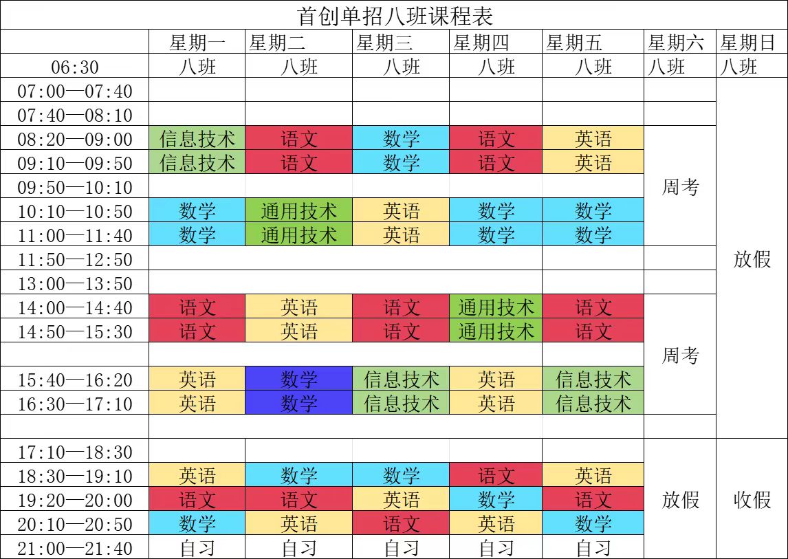 • 正课 8:00-17:30,晚自习 19:00-21:30;班主任和科任老师全程坐班,学生随问随答。