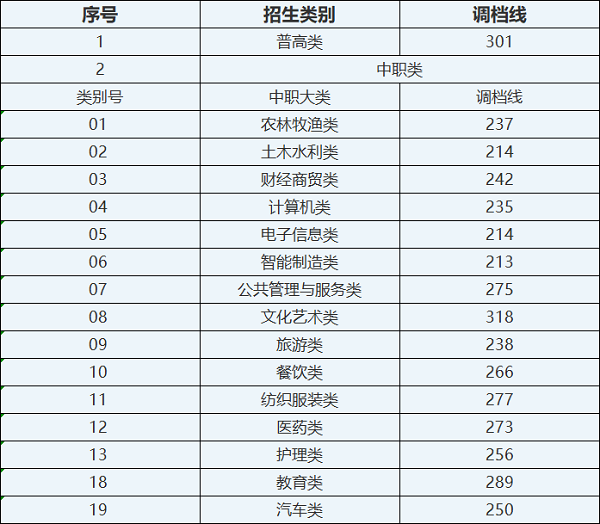2025年高职单招各类别录取线