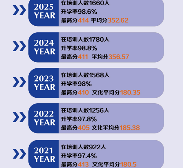 摘要:成都天呈单招培训学校办学至今,为省内各大院校输送生源一万八干余名,2025年单招培训687名考生,公办升学率达到了97.8%,高分学员85%。 详细咨询电话:18980784372(vx同号)~ 历年升学数据 25年单招高分占比 公办上线率97.8% 400分以上 2人占0.29% 350-400分208人占30.2% 300-