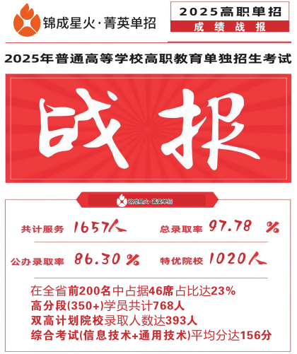 核心优势:2025年我校单招综合录取率97.78%,公办录取率86.3%,高分段(350+)学员768人。